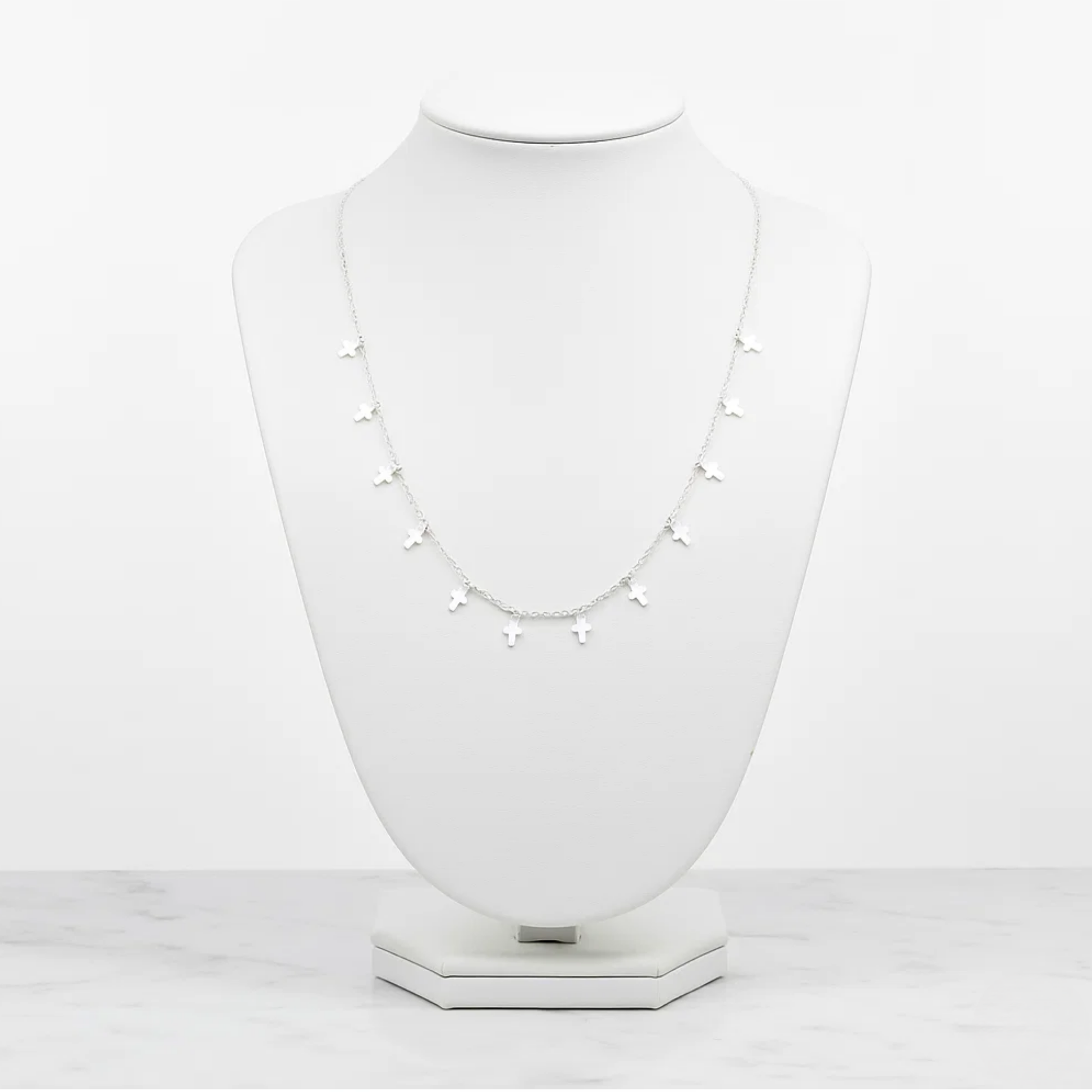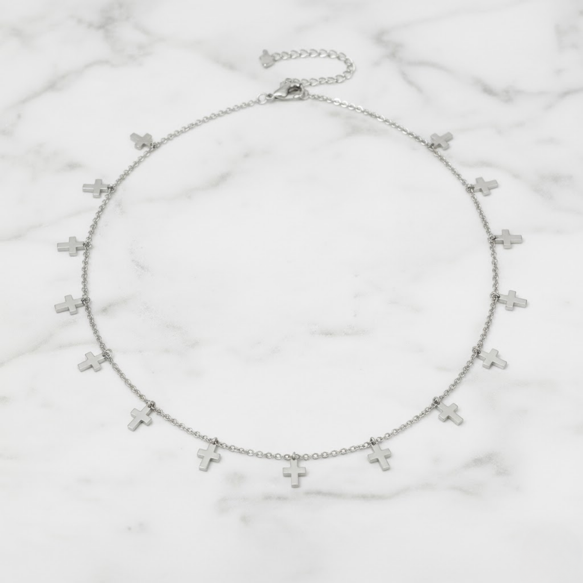 Handcrafted from stainless steel, this silver-toned design features polished mini cross charms spaced along a sleek chain. Subtle and meaningful, it’s easy to wear every day. Whether styled on its own or layered with your favourite pieces.