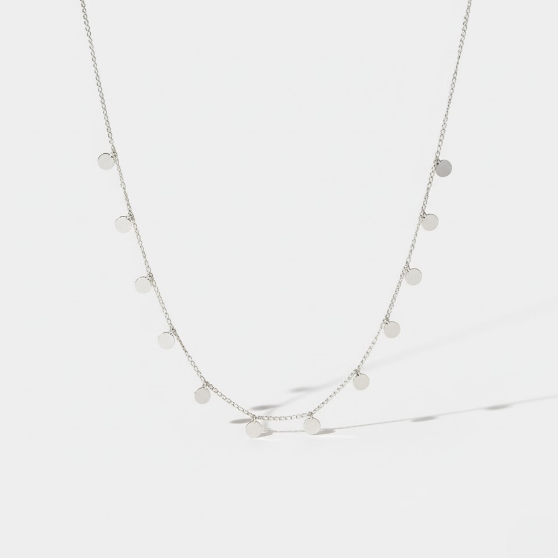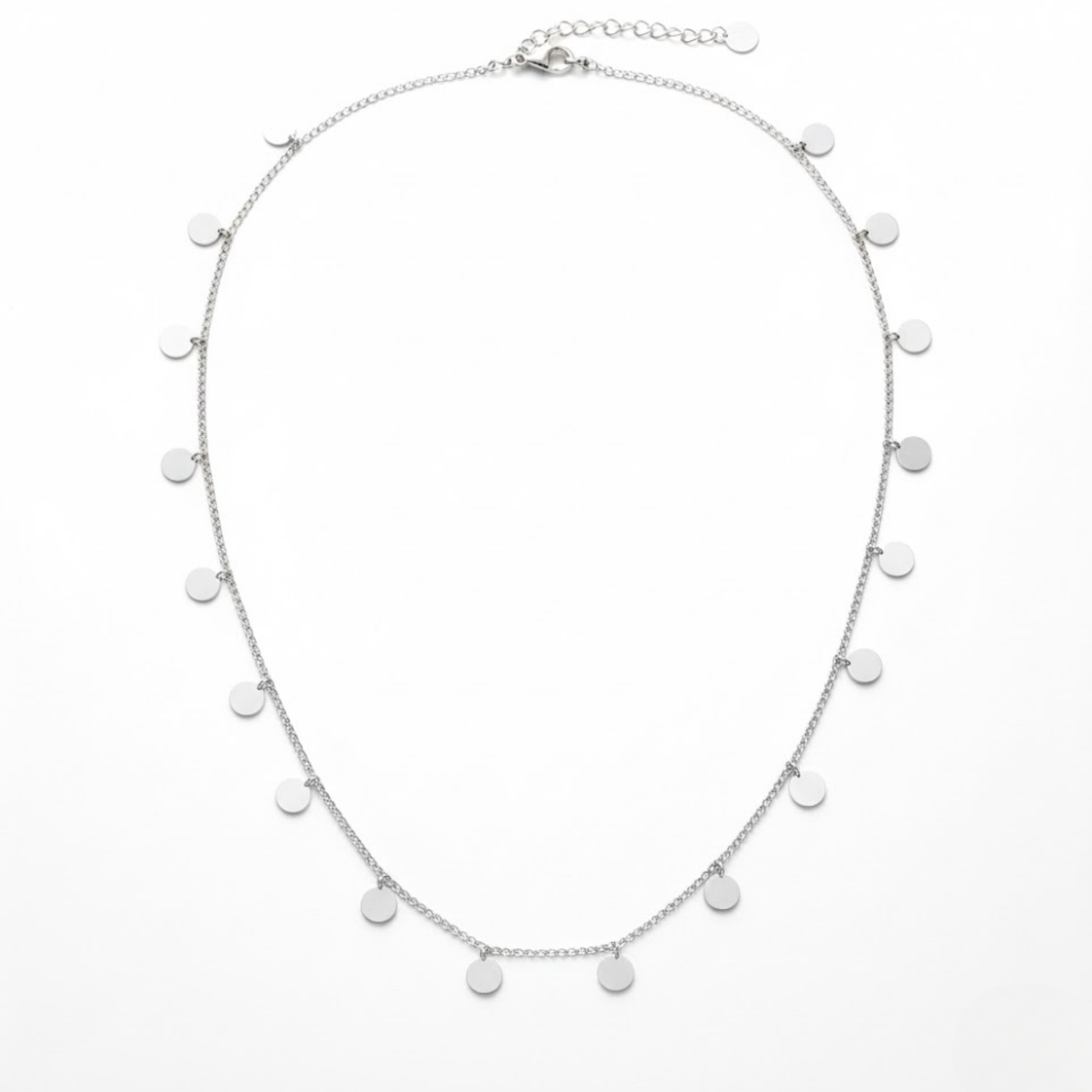Handcrafted with a polished silver-toned chain and smooth round charms, this piece brings a clean, effortless feel that works just as well for casual days as it does for relaxed evenings and summer outings.